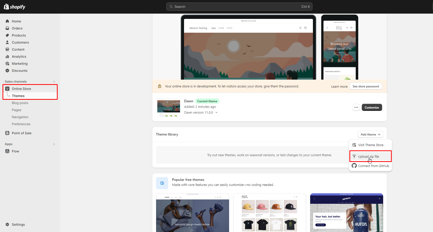 Upload Theme